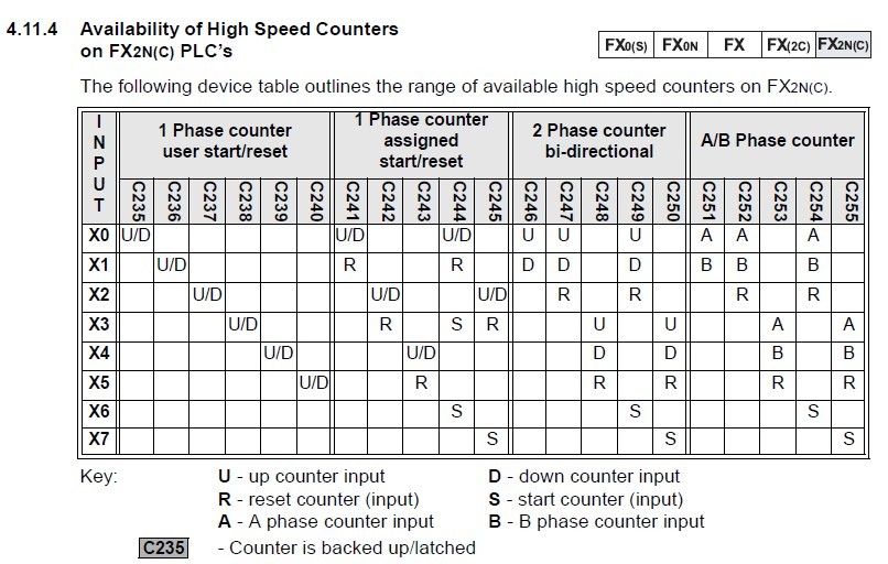 因要用到三路編碼器信號輸入采集,查閱手冊,發現不同解釋,聯系三菱400技術支持后得到答復,發上來跟大家討論一下,有實際用過的朋友還望現身說法