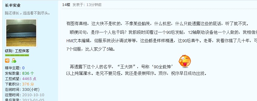 作為一個工控人,實在不適說出這種話,我也不想回你了,說多了也沒意思,還是要保持論壇和平的。