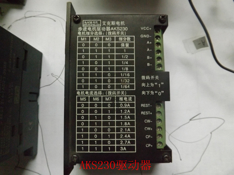 在網上找到這個步進驅動器和馬達的手冊,上面有接線圖。http://www.akstec.com/bujindianjicpml/AKS230.html