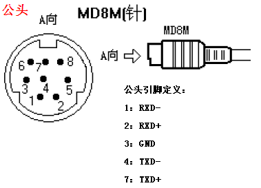 三菱FX系列PLC數(shù)據(jù)線 公頭引腳標(biāo)號及功能定義: