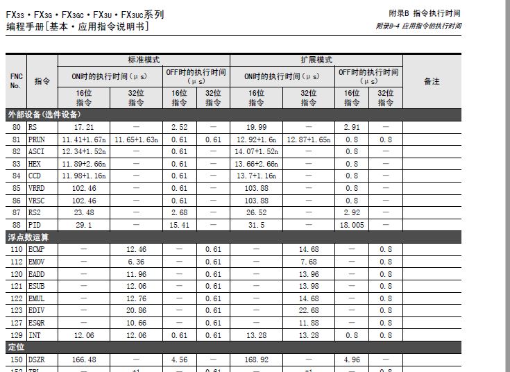 只有找到bool型的指令速度 三菱FX3S 210ns