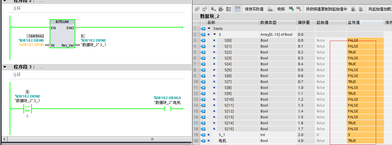 檢測位組合里面的位ON狀態個數,然后比較,這個在實際項目中經常用啊,檢測治具上面N個產品是不是都到位了,缺幾個?