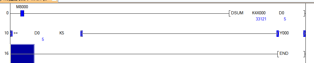 如果是三菱的PLC,這個指令可以檢測32個輸入,如果是更多的輸入,可以使用幾個指令,把結果相加就可以了,還是很簡單的