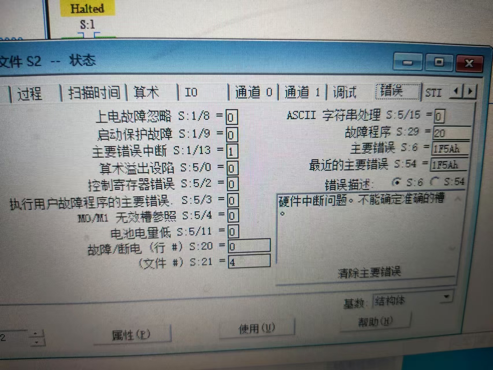 最近遇到了一個非常棘手的問題一直搞不定,希望大家能夠指點迷津。謝謝!!現場PLC用的是AB500的,最近經常出現故障停機,故障碼是1F5A,故障描述是硬件中斷問題,不能卻額定準確的槽,但通過轉動CPU的鑰匙開關又能正常運行,每次都要到現場這樣處理,能不能通過程序讓她自動復位。