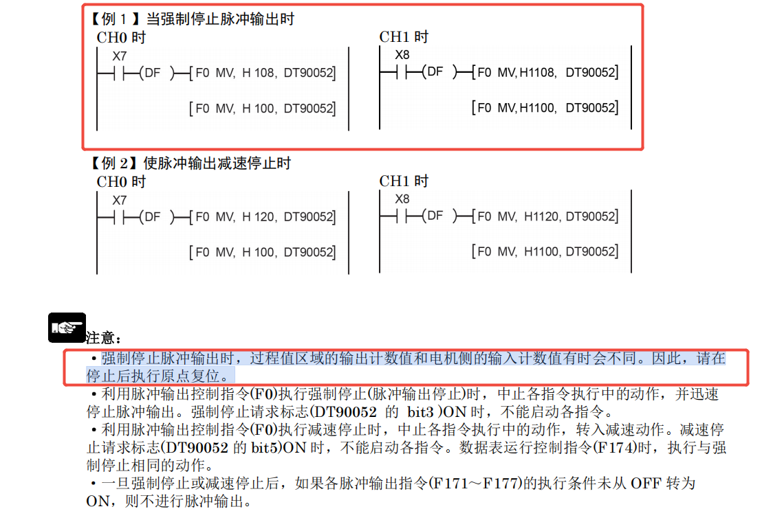 接手了別人的項目,現場反饋脈沖軸丟步了。自己去機臺測試,監控驅動器發現PLC顯示的當前位置,跟驅動器接收的脈沖數不一致。后來試出來了,只要電機在運行的過程中,按了暫停,就有一定概率出現。去查了PLC的手冊,發現這么一句話,瞬間尬住了,不知該怎么處理