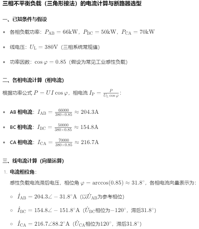 功率都給了 計算方法一樣的。考慮三項動平衡的話 按單項最大功率選,空開選型的重載*2.5,輕負載1.5 選型就好