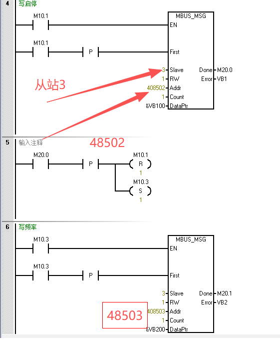奇了怪了,按照樓上的師傅將地址改成48502/48503,變頻器站號改為3后還是寫頻率及寫啟停無效