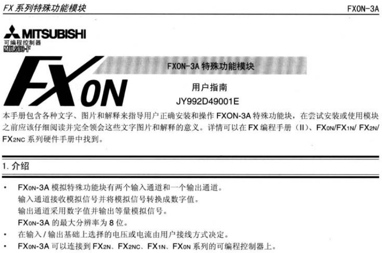 也別叫我去下載FX0N-3A的使用手冊,找遍百度、找遍谷歌也找不到,所以才會被稱之“老古董模擬量模塊”。