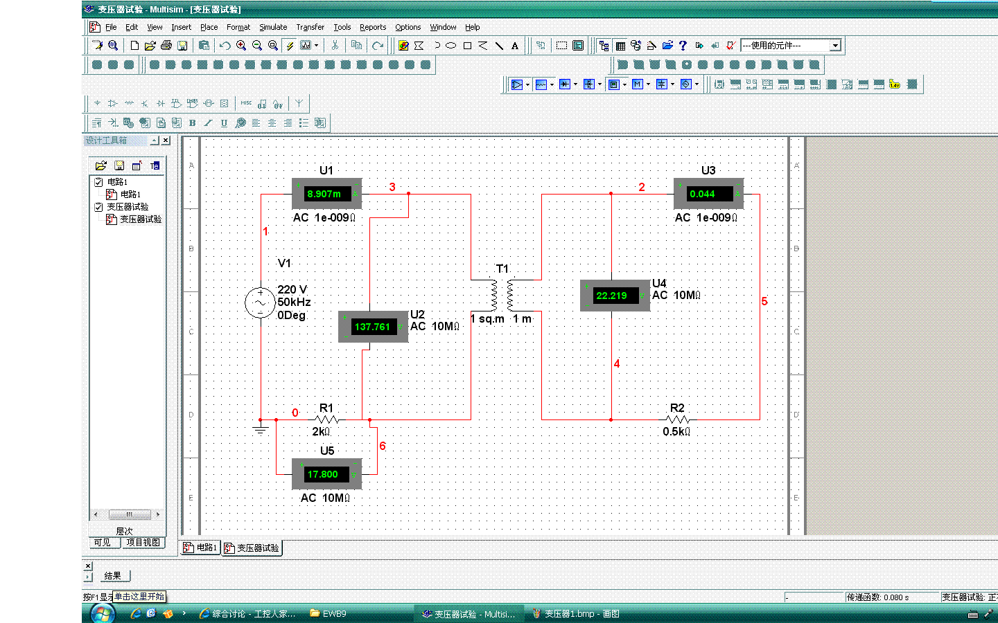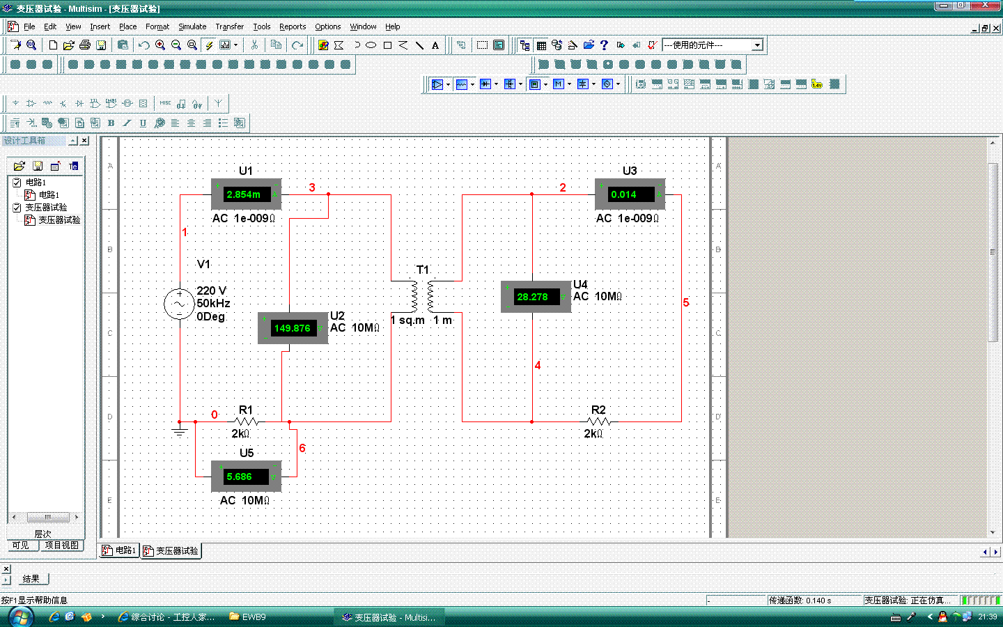 我對變壓器一二回路 做了個簡單仿真實驗  現在想結合一二次側的回路平橫方程問個問題