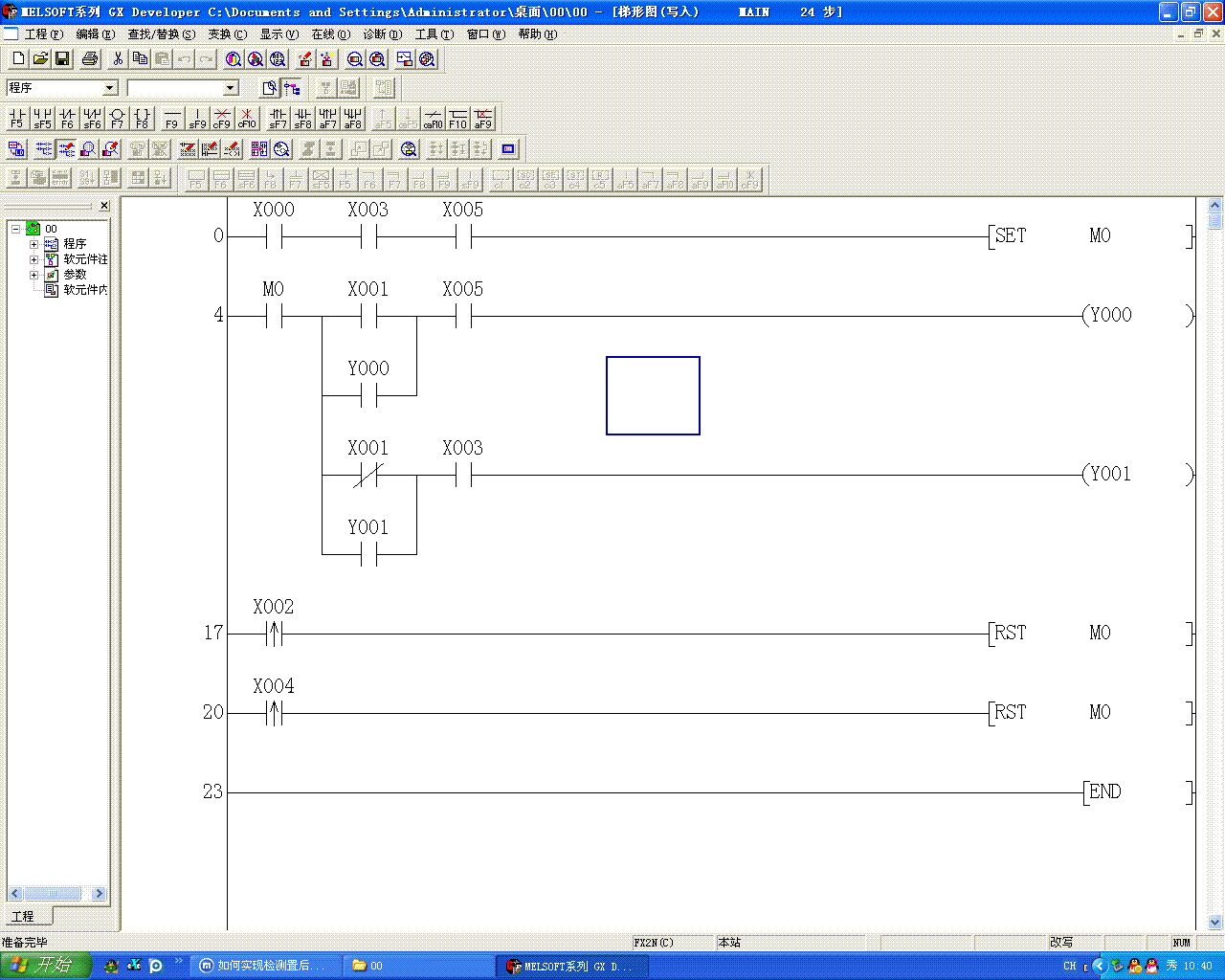 我說一下第一行指令,X000檢測到后Y000長汽缸得電,X002檢測到后Y000失電回退,汽缸回退一點點距離后,X002就斷開了,這時Y000又得電向前推,X002檢測到后Y000又失電回退……周而復始……