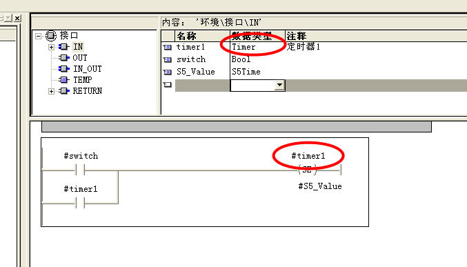 欲將圖中FC5程序塊做成子程序,switch和s5_value是兩個局部參數、定時器T100是實參,請問定時器T100可以指定成局部變量參數嗎?如果行,參數類型選擇word、Dword、int、Dint、S5time、time類型,還是其它什么類型?