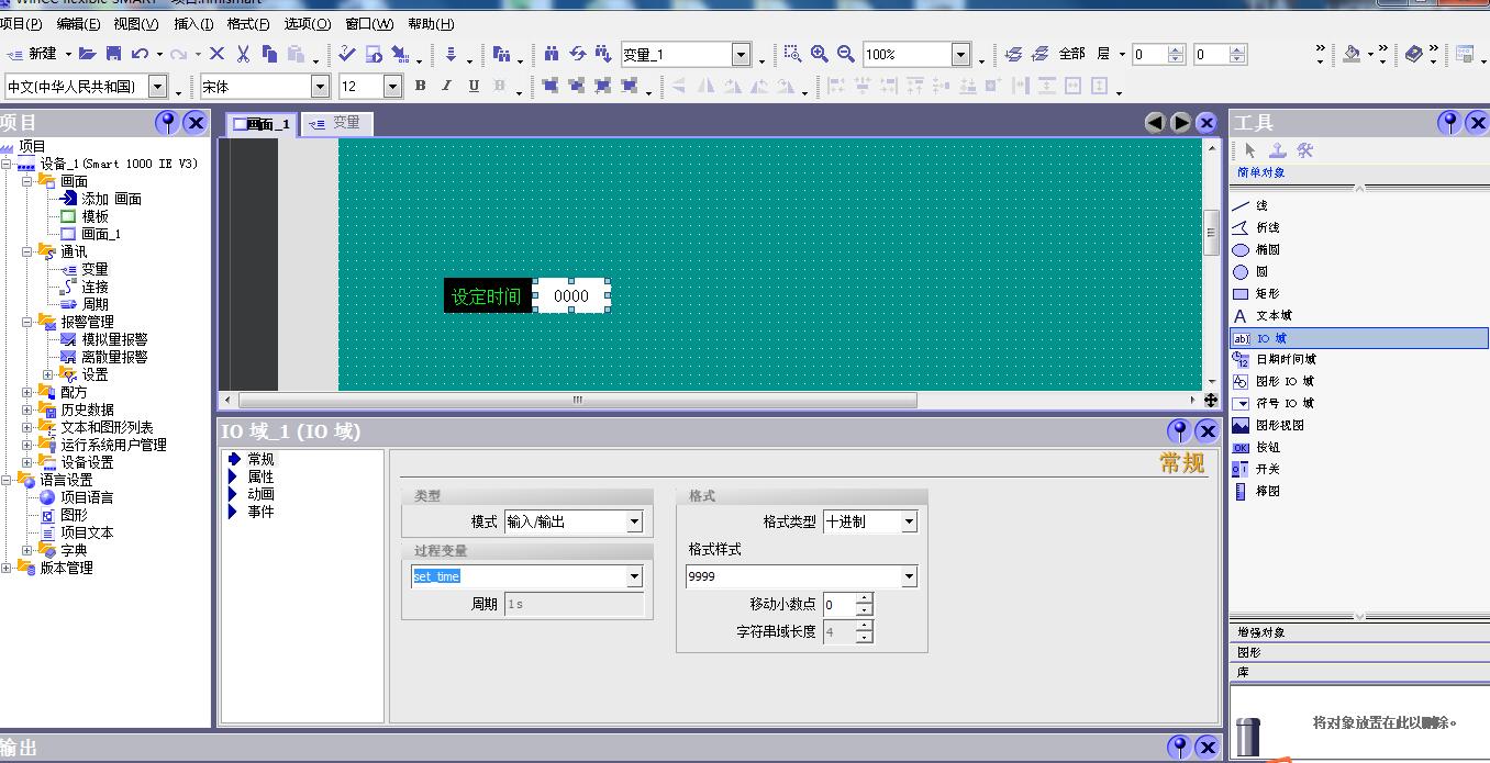 2.右邊IO域  拖進來  常規里面 連接剛才建立的變量