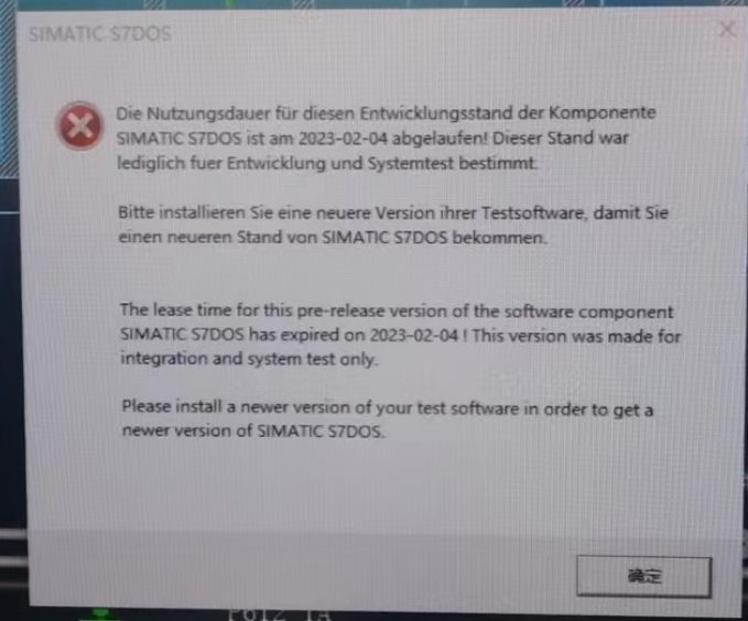此軟件組件SIMATICS7DOS的預(yù)發(fā)布版本的租賃時間已于2023-02-04到期!此版本僅用于集成和系統(tǒng)測試