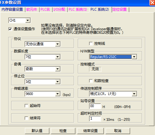 我這邊有一臺LS的觸摸屏 型號是XP30-BTE  需要跟我的PLC 三菱FX3U通訊 PLC加了無協議的232口, 雙方都支持232通訊, 通訊設置都是一樣的 9600 7位 奇 停止位1  請問怎樣 才能通訊上,附上通訊配置圖