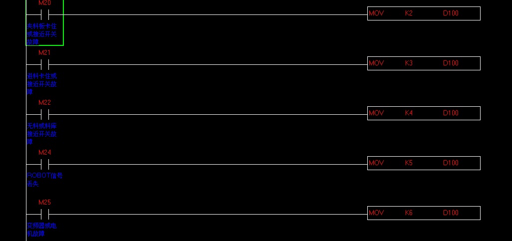1、PLC程序根據(jù)不同的報(bào)警,將K1-K12 轉(zhuǎn)移給D100;