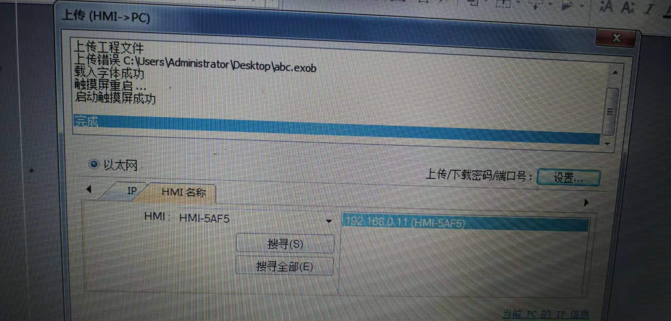 觸摸屏型號是MT8071IE.,上傳時提示上傳錯誤