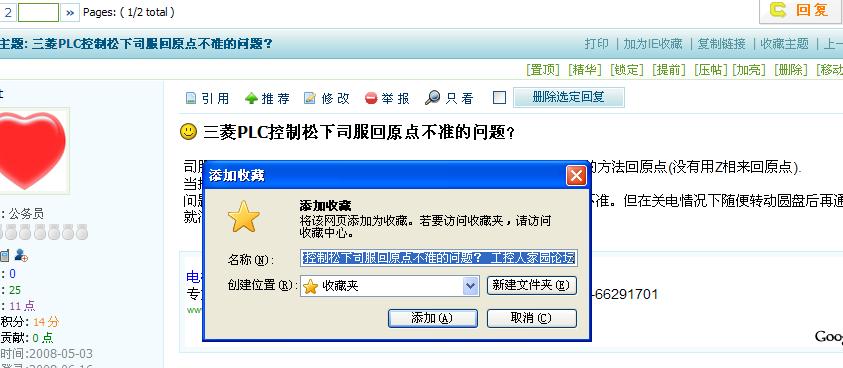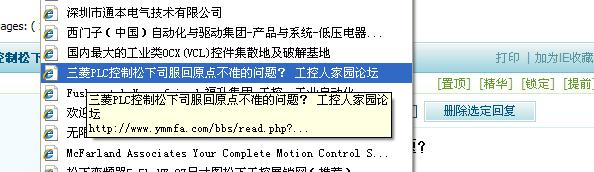 楊工,請(qǐng)問收藏夾怎么用呀? 我收藏了"三菱PLC控制松下司服回原點(diǎn)不準(zhǔn)的問題?"www.tonme.cn/bbs/read.php?tid-14990.html 但是不知道下次怎么查看? 謝謝!!! |