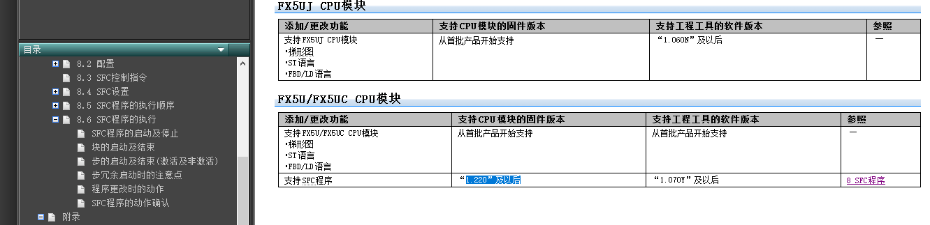 升級了GX Works3-1.070Y 發現FX5U也可以用SFC編程。于是就編寫了一個簡單的SFC程序,編譯沒有錯誤,但是不能下載和模擬。查找了一下相關手冊,說是固件版本要1.220”及以后才支持SFC.  請教大神哪里有FX5U固件1.220下載