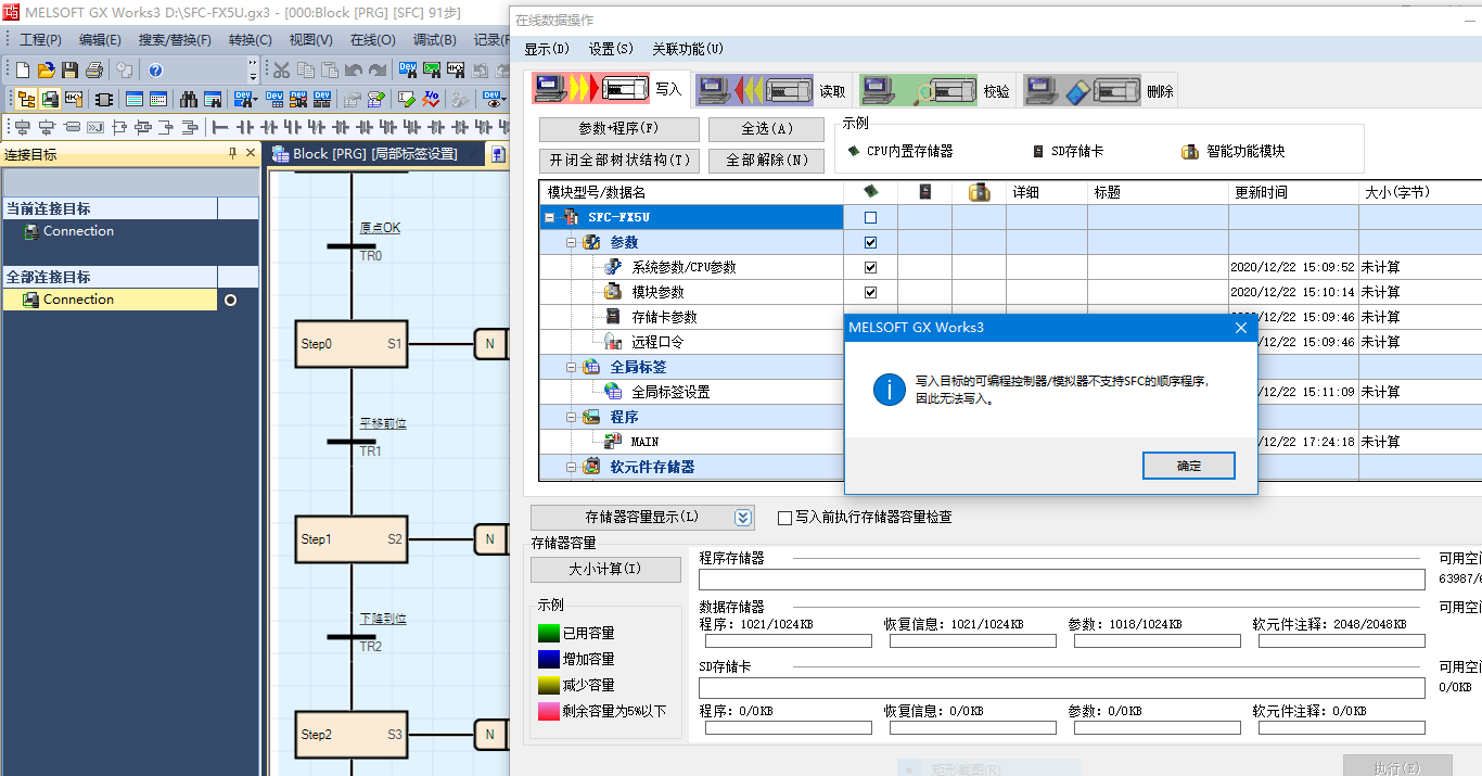 引用樓主zhongliang于2020-12-22 18:02發表的 FX5U SFC程序不能模擬和下載 :