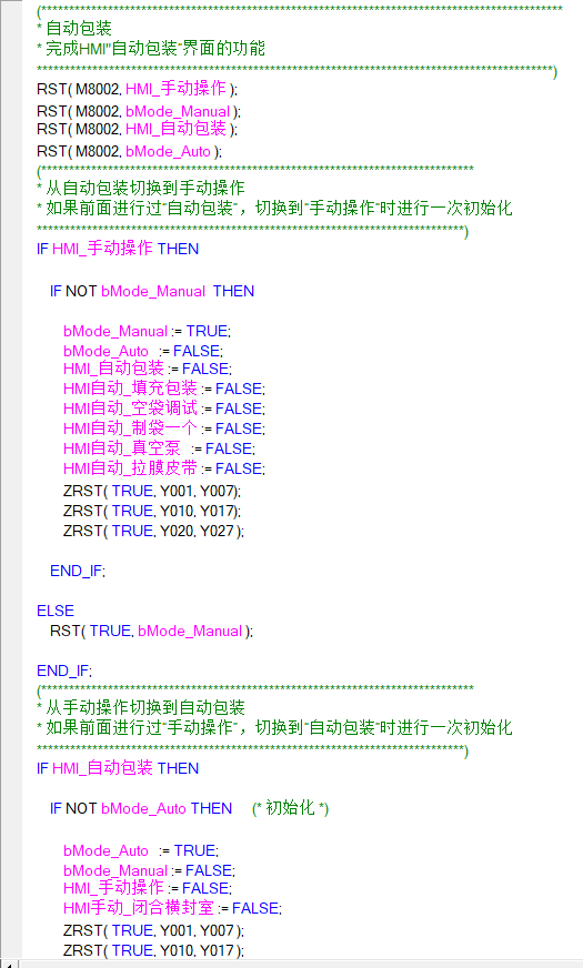 我就是覺得你是直接把梯形圖用if else翻譯過來,而且一個條件就占一行,那屏幕得多大才夠看,中英文混合寫代碼過程中還得頻繁切換輸入
