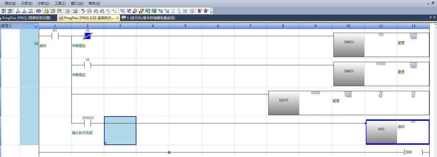 如圖所示,用中斷定位指令時候,可以根據是否有中斷感應,進行區分兩段速度控制,但是沒有加這個,就不能隨便改變速度,否則立馬報警停止。