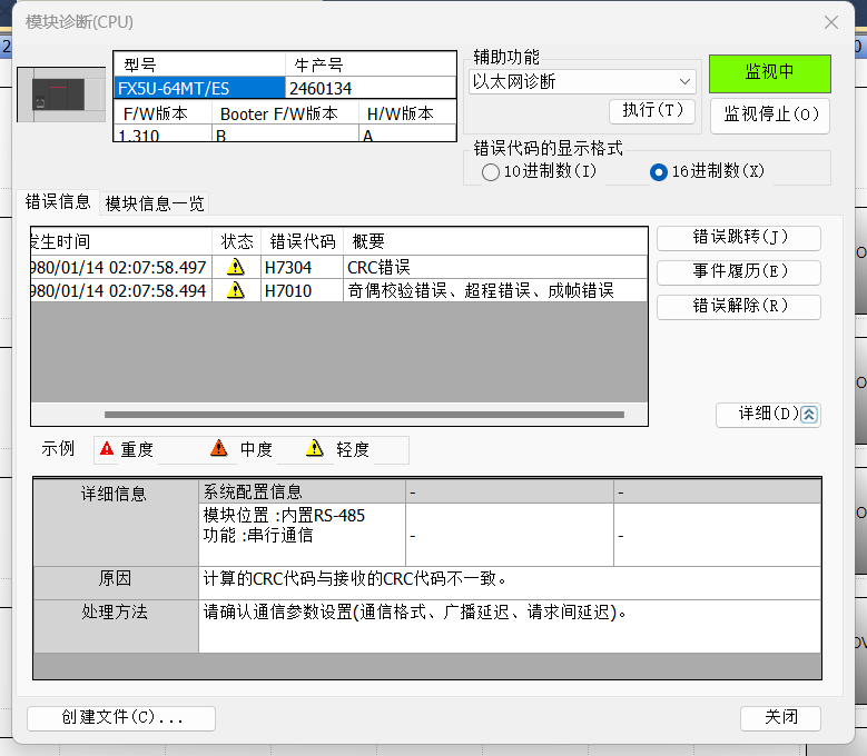 3臺FX5U做MODBUS485通訊,3臺機都在線時通訊正常,如果將從站1或者從站2斷電(通訊線路不動),主站跟另一個從站也不能通訊了;