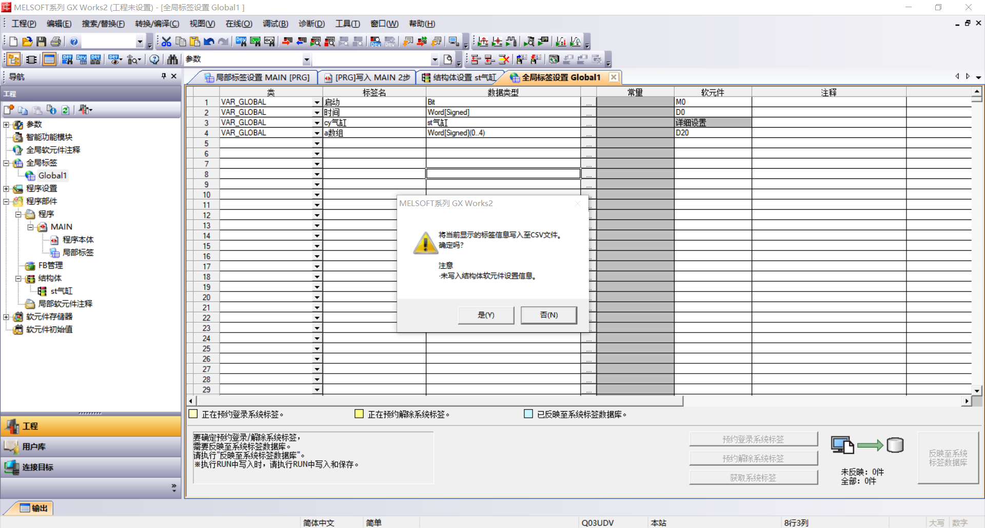 到了GX WORKS3好了一點(diǎn),可以導(dǎo)出結(jié)構(gòu)體標(biāo)簽了,但是還是要給每個(gè)標(biāo)簽分配絕對(duì)地址,這不是多戳余嗎?我都用標(biāo)簽了還要我分配絕對(duì)地址。