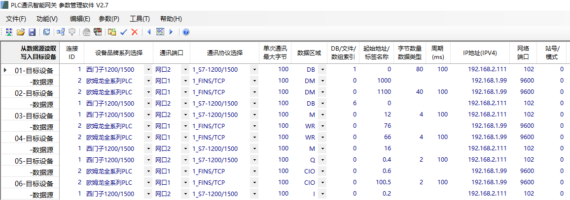 任務1:從歐姆龍PLC讀取DM1000開始的40個字,寫入到西門子PLC的DB1.DBB0開始的80個字節;