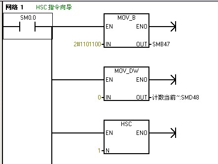 3.設(shè)定值是6000,計(jì)數(shù)值到6000后產(chǎn)生中斷,這個(gè)沒問題,但是編碼器轉(zhuǎn)動(dòng)時(shí),HSC0還會(huì)計(jì)數(shù)。怎么寫程序就可以實(shí)現(xiàn)計(jì)數(shù)到6000后,在中斷里HSC0里面的當(dāng)前值馬上清零,旋轉(zhuǎn)編碼器旋轉(zhuǎn)時(shí),還不會(huì)計(jì)數(shù)。等再啟動(dòng)時(shí)才開始計(jì)數(shù),就是說到6000后怎么清掉HSC0的值。