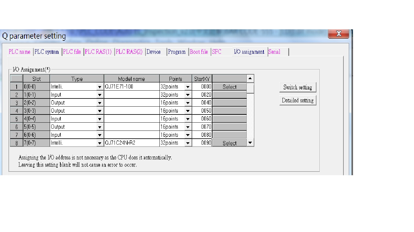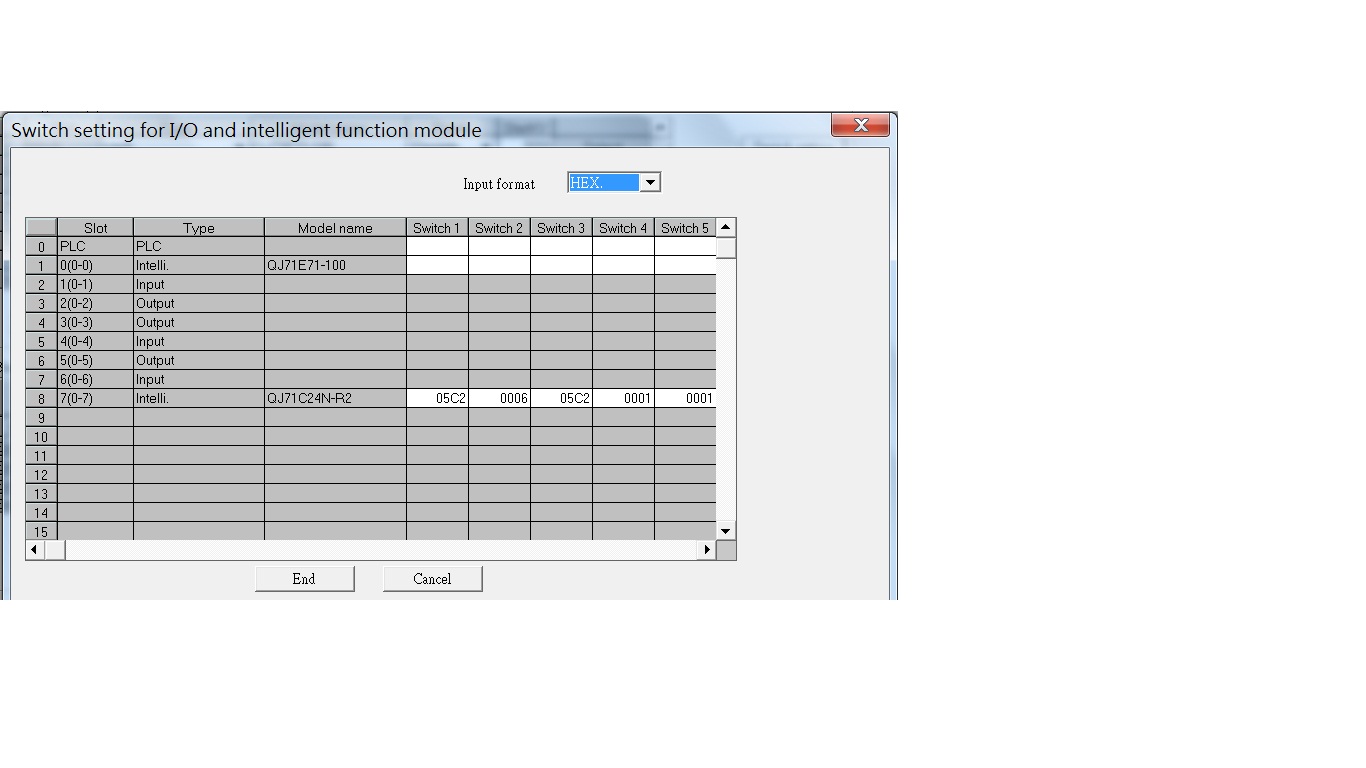 而通訊模組(QJ71C24N-R2)也設定一樣(只用到CH1),站號為7 SW1(05C2) SW2(0006) SW5(0007)