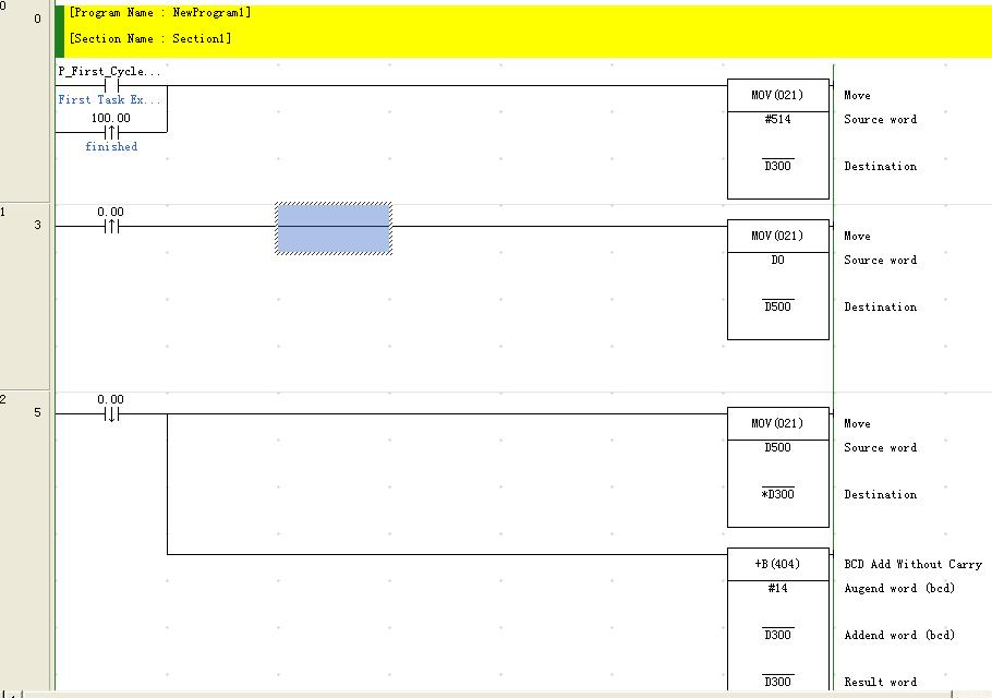 最近做的一個東西,用到變址寄存器,沒用過OMRON 的變址寄存器,請教高手,如把D500變址為D514 |