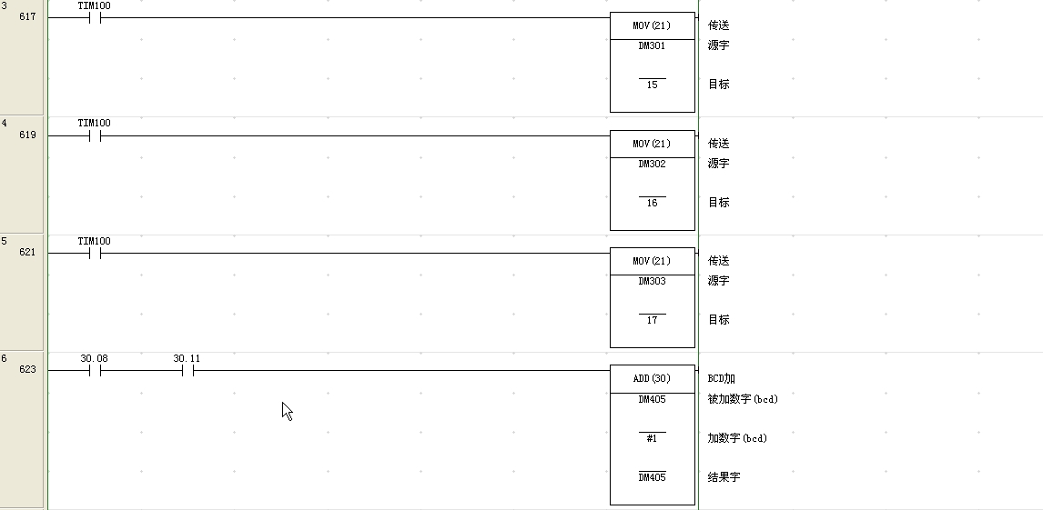 我用歐姆龍CPM2AH-60CDR+20EDR+DA041編程0-10V輸出總感覺太繁瑣了,不知有沒有簡單的方法請高手指教。下面是我編的程序