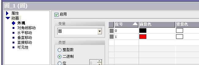 按照步驟了 ,還是不行啊,版主。。。我新建了啟動、停止這連個按鈕,又新建了兩個變量(名稱是啟動、停止)數據類型都是布爾型連接到s7300中的DB1_DBXO_0和DB1_DBXO_1。。然后是啟動按鈕連接了啟動變量,停止按鈕連接了停止變量,并且都是在  “事件”“單擊”類型“編輯位” 中選擇了SetBit。。那個圓連接DB1_DBXO_2,設置如圖