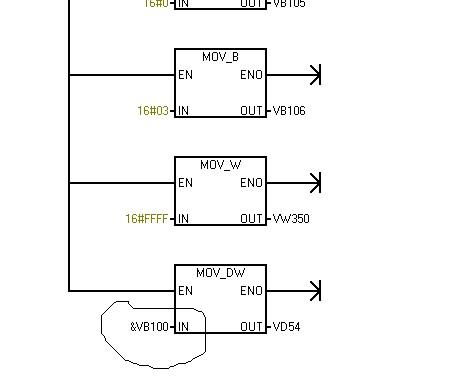 MOVD &VB100 VD54 即將VB100的地址放入VD54中,而不是將vb100內的值存到VD54中去。