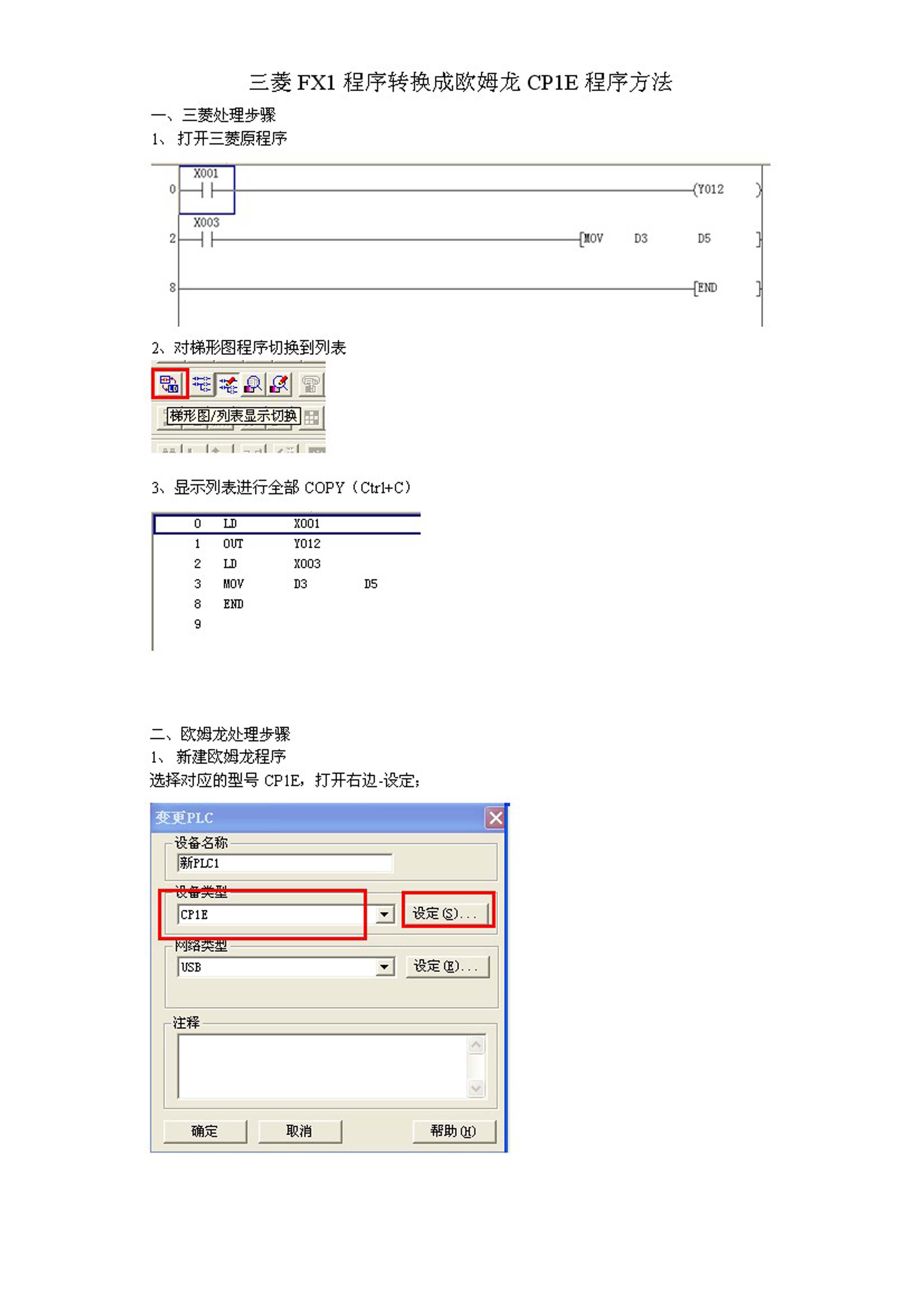 三菱FX1程序轉(zhuǎn)換成歐姆龍CP1E程序方法