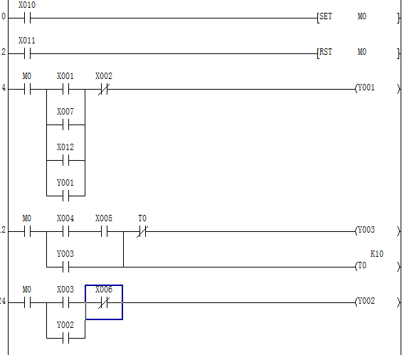 我想問下,pengwang所發的那個梯形圖中,自動是X010,急停是X011,是吧,那那個單循環是哪個啊,怎么達到,我沒看懂,哪位大哥能解說下嗎