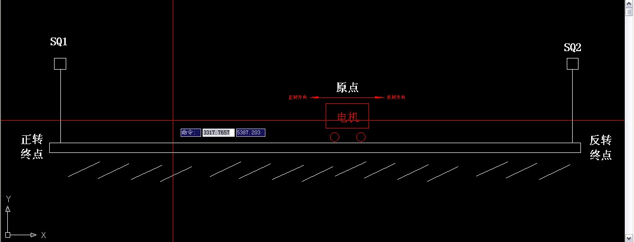 用M8000內部繼電器啟動,用觸摸屏來控制,限位開關串在輸出里即可。