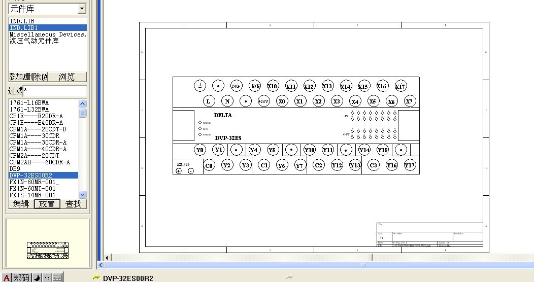 用Protel做一個元件庫,或者添加GB4728的國標元件庫都可以,上圖是我自己畫的一個臺達PLC的元件,如果要用拿出來即可。