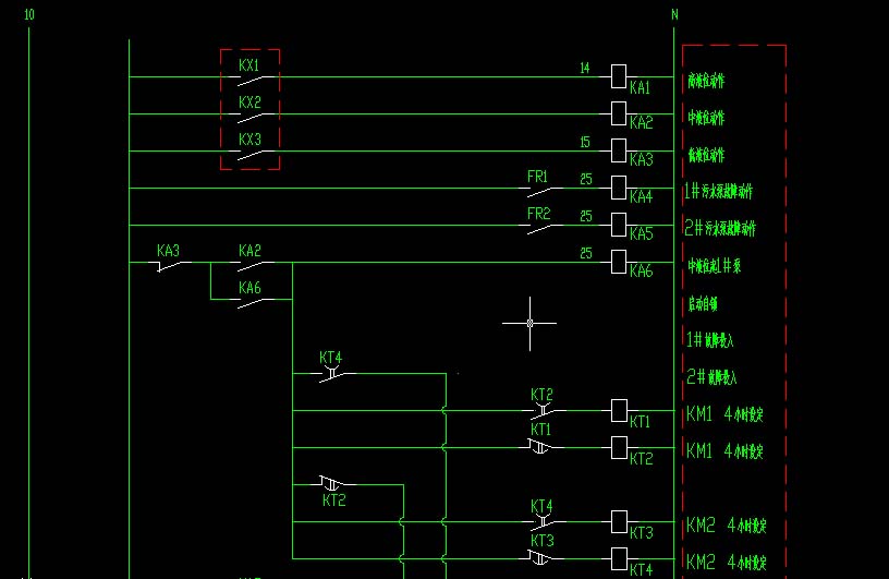 合時(即電機1#故障時),KA4常開觸點要使KM2接觸器吸合(即電機2#啟動,當然此時KA5常開觸點不能閉