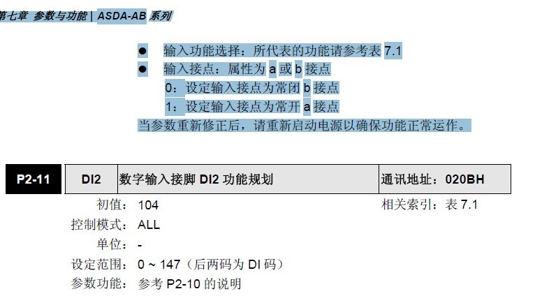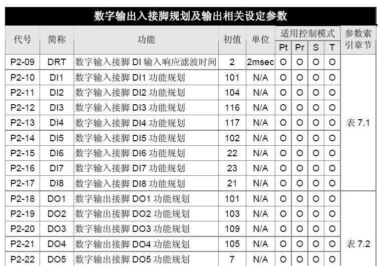 還有在定義輸入腳的時(shí)候,比如OD1對(duì)應(yīng)的是CN1插頭第七腳,它需要來設(shè)置參數(shù),對(duì)應(yīng)什么樣的功能,說什么輸入功能選擇見表7.2,表7,2在哪里,找不到