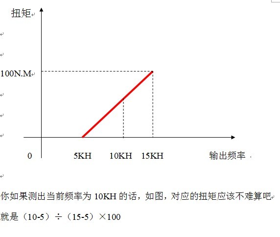我的理解,首先要確立兩個原則:1,計數方式要用采樣計數;2,扭矩儀的量程和輸出是線性的比例關系,也就是0扭矩時對應的輸出頻率是5KH,100扭矩對應的頻率是15KH。鑒于以上兩個原則,采樣計數可以得出當前的輸出頻率,這樣可以算出對應于零點的比率,可以算出當前扭矩。比如測出當前頻率8KH,那么(8-5)/(15-5)*(100-0),結果即為當前扭矩值