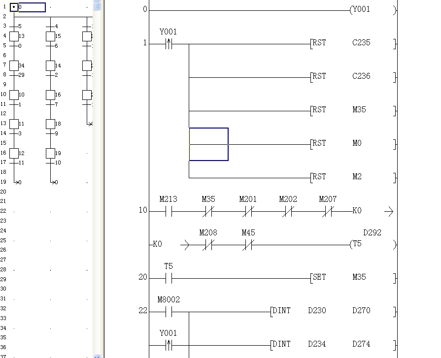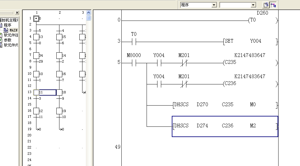 描述:計數值與設定值D270,D274比較,M0接通進入下一步