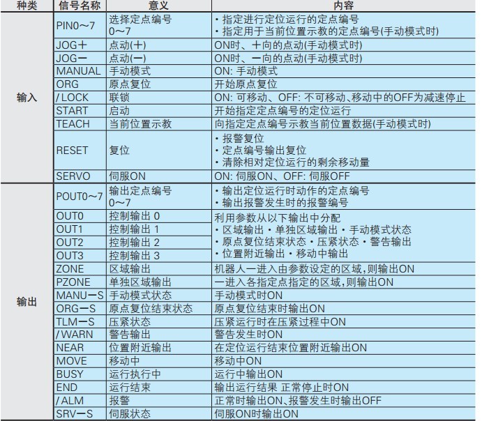 電缸為I/O型,定位輸入點PIN  0-7    定位輸出點 POUT 0-7