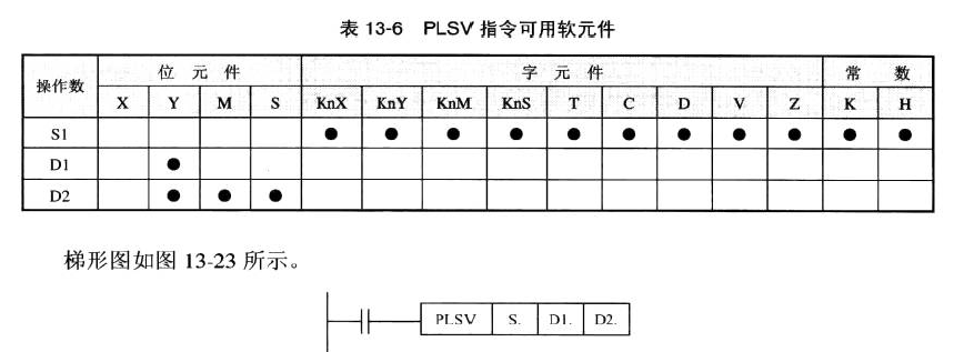程序例:︱-----︱︱-----------(PLSV D300 Y000 Y003) 將軟元件S設(shè)成一個數(shù)據(jù)寄存器D300,然后通過外界條件將輸出脈沖頻率的數(shù)值MOV至該寄存器。