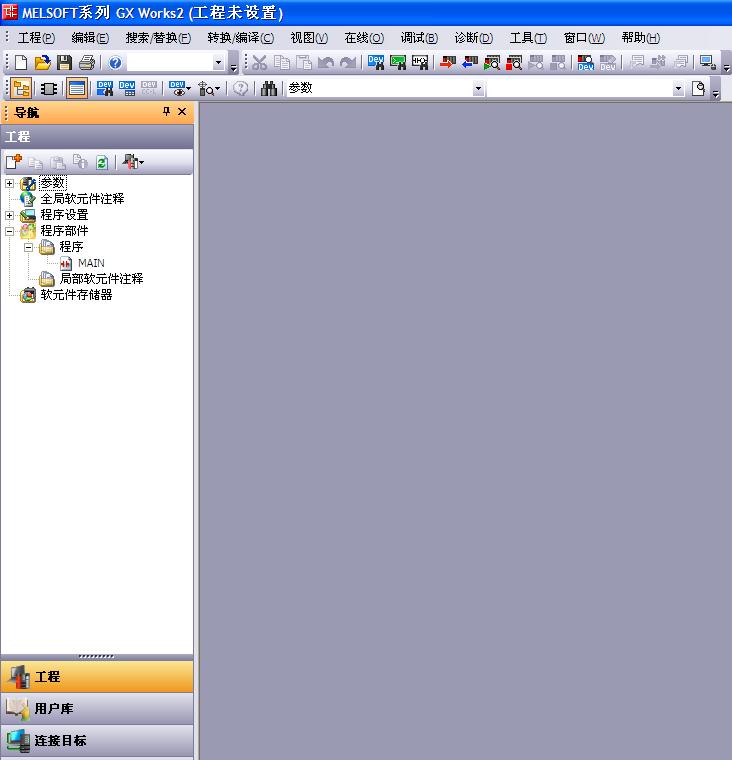 再執(zhí)行了上述步驟后,在GX Works2中點擊工程→程序部件→程序→雙擊MAIN。不然,顯示程序的區(qū)域仍是一片灰色。