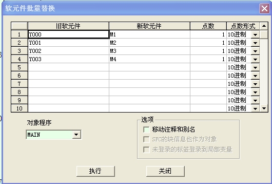 一併置換的點(diǎn)數(shù) 打Y0 M1 4點(diǎn)