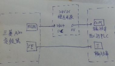 引用引用第1樓kyy80于2013-11-25 17:19發(fā)表的 :+24V接PLC的輸入公共端...0V接變頻器的SE端......RUN接PLC的輸入I端....
