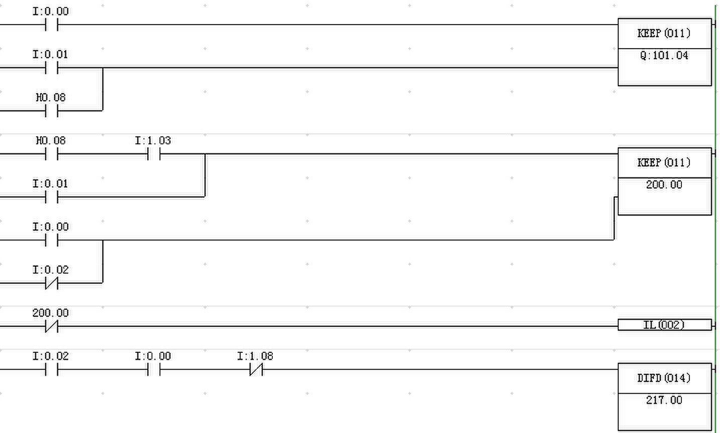 手上有個歐姆龍程序,就12月2號,上司要我翻譯成三菱的,歐姆龍轉 三菱 歐姆龍內部軟元件弄不清楚,歐姆龍的編程手冊粗略看了下,好像也沒有。 如 圖里面所示,Q:101.04 這換成三菱語言是什么呢?Y4?M4?還有個純數字如200.00 I開頭我知道是輸入,H是用于自鎖的繼電器,Q應該就是三菱里的輸出Y。其他符號就完全不知道了 求大神幫助 我在線等護膚 謝謝 Q:101.04 啥意,思別說是 第101通道的第五位,我想問的 他在三菱中應該算什么 |