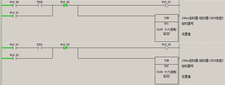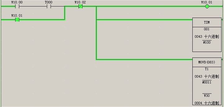 我編寫(xiě)的歐姆龍PLC程序有8個(gè)分支,目的是進(jìn)行順序控制,用IL/ILC指令。在仿真運(yùn)行過(guò)程中,T001定時(shí)時(shí)間到后應(yīng)該執(zhí)行第三個(gè)分支,w10.02變?yōu)檎妫刂七^(guò)程到此就不進(jìn)行下去了,請(qǐng)問(wèn)各位大俠,怎么解決這個(gè)問(wèn)題?我試過(guò)用子程序和JMP-JME指令實(shí)現(xiàn)分支程序的功能,但是停止調(diào)用子程序后,子程序中的輸出任然保持調(diào)用子程序時(shí)的狀態(tài),而控制功能要求停止調(diào)用子程序后,里面的輸出復(fù)位為0;JMP-JME實(shí)現(xiàn)也是與子程序調(diào)用相同的狀況,請(qǐng)大俠指教,不勝感激!PLC型號(hào)為歐姆龍CP1E-N40,程序見(jiàn)附件。