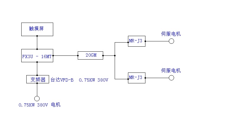 配置如圖                                    伺服是   MR-J3-10A                     觸摸屏維綸MT-6070i